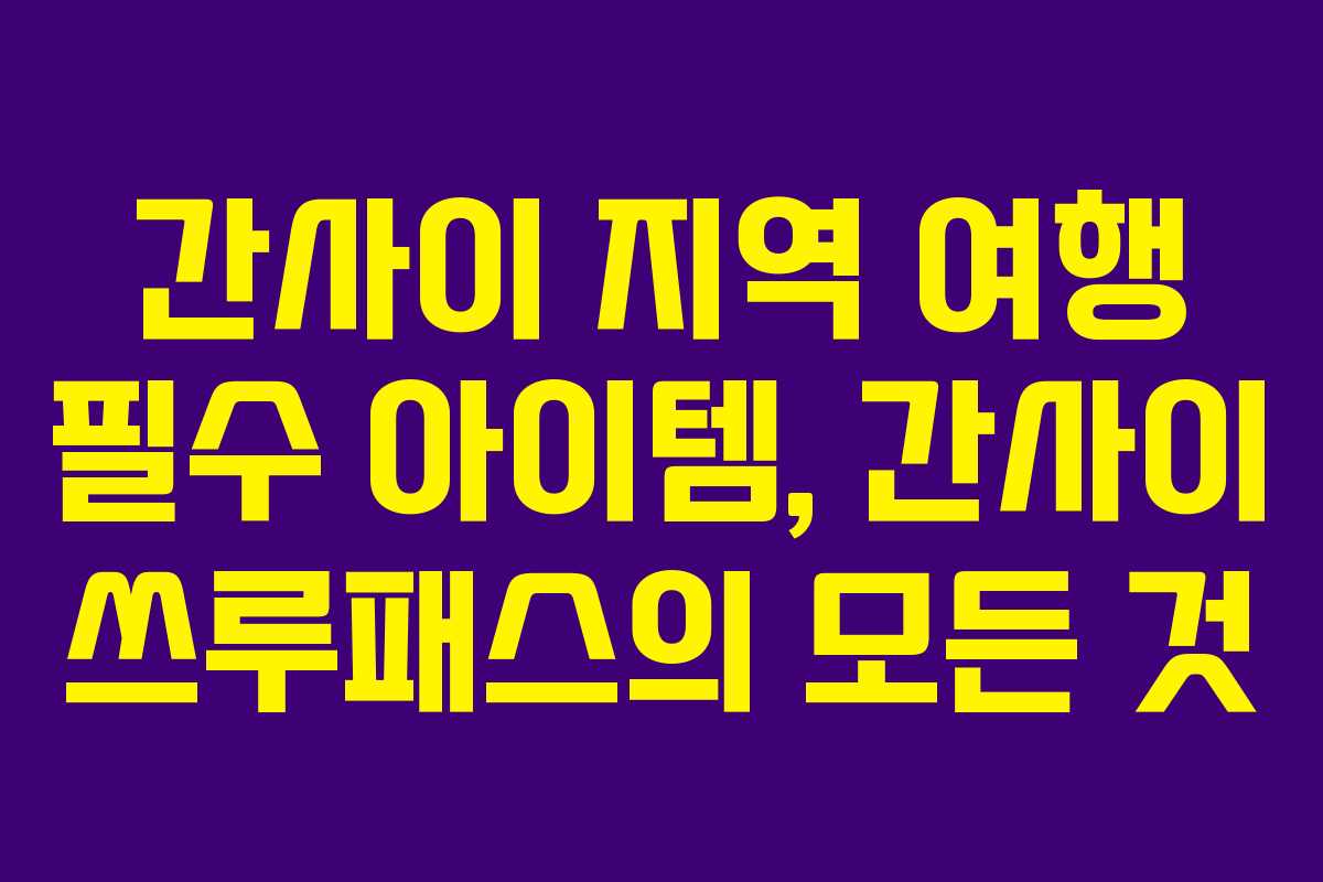 간사이 지역 내에는 여러 가지 교통 패스가 존재한다. 오사카 주유패스, 한큐 패스, 킨테츠 레일 패스 등 그 종류가 다양하다. 이러한 패스들은 각자의 특성과 유용성에 따라 선택할 수 있다. 만약 오사카 시내를 집중적으로 탐방할 계획이라면 오사카 주유패스가 적합할 수 있다. 반면에 교토와 고베를 포함한 더 넓은 지역을 여행하고자 한다면 간사이 쓰루패스가 더 적합하다. 이렇게 각 패스의 특성을 잘 이해하는 것이 여행 준비의 첫걸음이다.