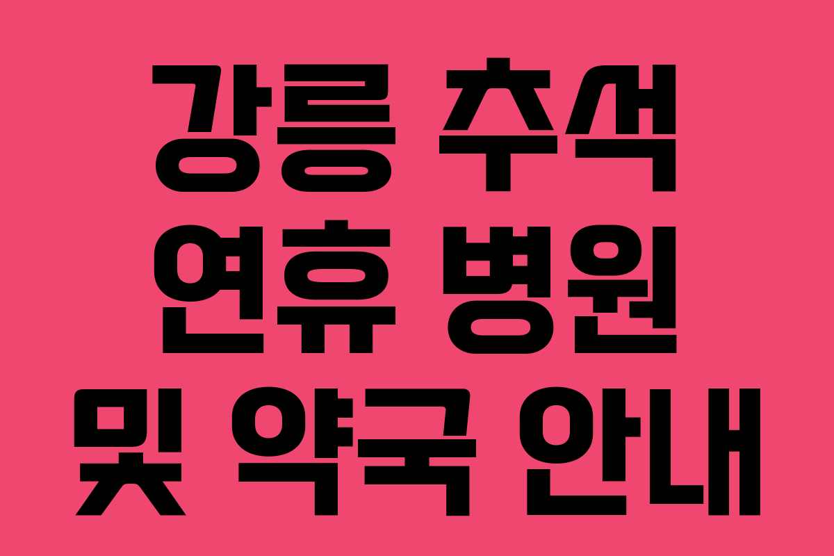 2024년 추석 연휴 기간 동안 강릉 지역에서 운영되는 병원과 약국의 정보를 안내드립니다. 연휴 동안에도 건강 문제로 병원을 이용해야 할 경우를 대비하여, 다음 정보를 참고하시기 바랍니다.