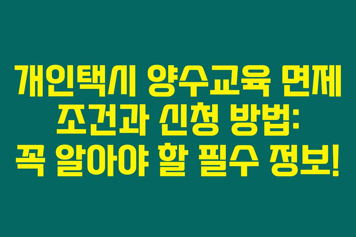 개인택시 양수교육 면제가 궁금한 분들께 이 글이 큰 도움이 되었길 바래요. 면제 조건을 잘 확인하고 준비하셔서 원활하게 양수 절차를 진행하세요!