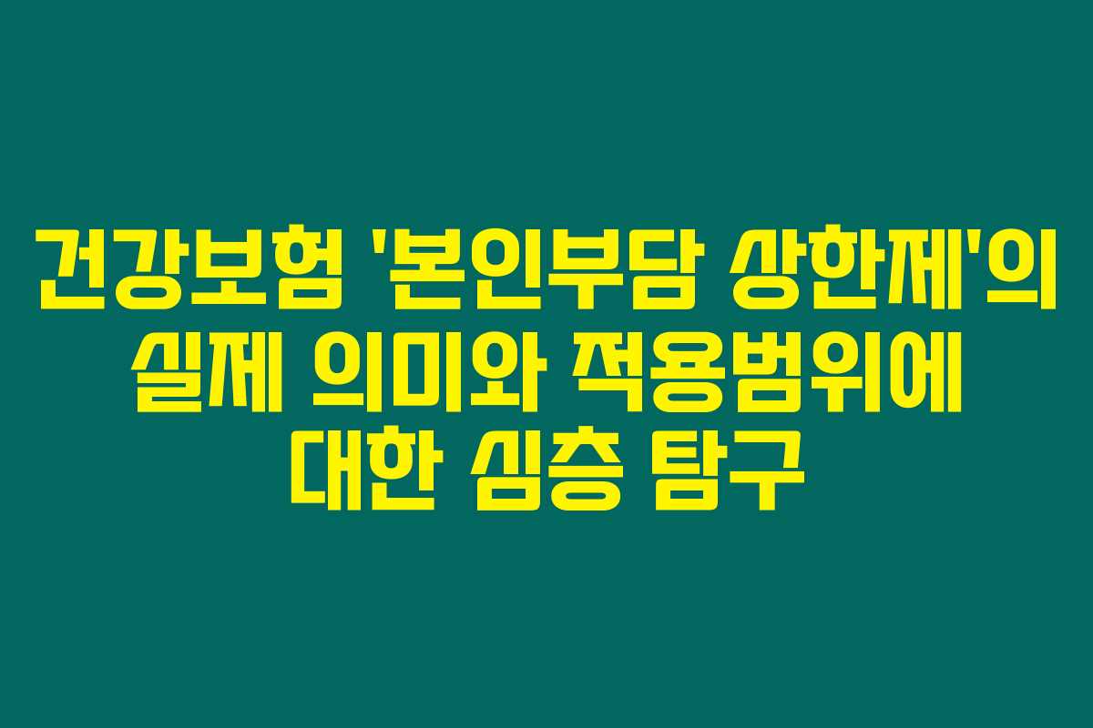 제가 리서치한 결과로는 건강보험 본인부담 상한제는 의료비에 대한 국민의 경제적 부담을 경감하기 위해 마련된 제도입니다. 따라서, 본인부담 상한제가 어떻게 작용하는지, 그 적용범위는 무엇인지 아래를 읽어보시면 더욱 자세히 알게 되실 거예요.