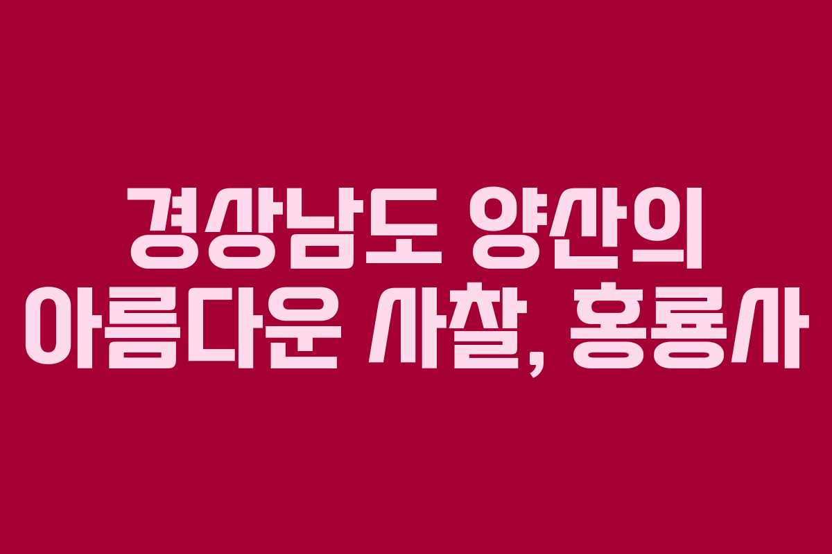 경상남도 양산을 방문하신다면, 홍룡사는 꼭 방문해야 할 명소입니다. 몸과 마음이 정화되는 절경을 경험할 수 있으며, 자연과 조화롭게 어우러진 풍경을 감상할 수 있습니다.