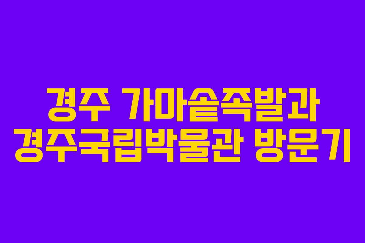 경주 가마솥족발에서 맛있는 식사를 즐기고, 경주국립박물관에서 신라의 역사와 문화에 대해 알아보는 시간을 가지면 특별한 추억이 될 것입니다. 관광과 미식을 동시에 즐길 수 있는 이곳에서 좋은 기운을 받아가시길 바랍니다.