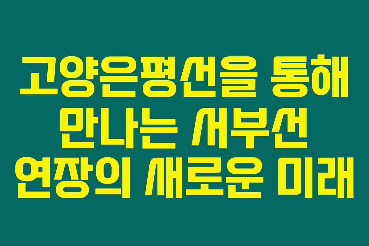 제가 직접 체크해본 바로는, 고양은평선의 서부선 연장은 지역 발전과 교통 편의성을 극대화하는 중요한 프로젝트입니다. 서부선 연장에 대한 정보와 실천 계획을 알아보니 많은 기대를 모으고 있더라고요. 아래를 읽어보시면, 고양은평선 연장이 무엇이며, 이렇게 간절히 기다리는 이유는 무엇인지에 대해 자세히 이해하게 될 거예요.