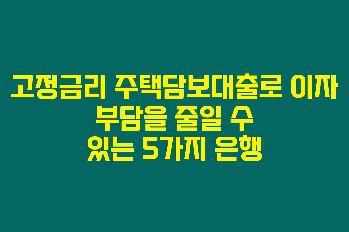 제가 직접 조사해본 결과로는, 주택담보대출을 갈아타기 좋은 은행들을 찾는 것은 많은 사람들에게 큰 도움이 될 수 있더라고요. 주택을 담보로 하여 대출을 받는 것은 가장 보편적인 대출 형태지만, 고정금리 형태의 대출 상품이 상승하는 금리에 대비하여 이자 부담을 줄이는 데 중요한 요소로 부각되고 있습니다. 아래를 읽어보시면 고정금리 주택담보대출 갈아타기에 유리한 5개의 은행을 소개해드리겠습니다.