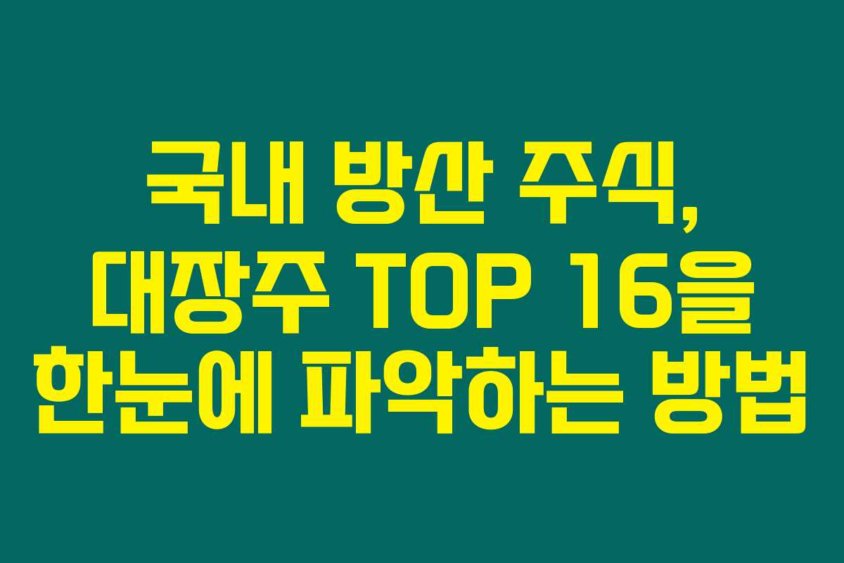 제가 직접 경험해본 결과로는, 최근 방산 산업에 대한 관심이 급증하며 관련 기업들의 주가도 덩달아 오르고 있습니다. 방산에 대해 구체적으로 알고 계신가요? 오늘은 한국의 방산 관련주 대장주 16개를 정리해볼까 해요. 아래를 읽어보시면 각 기업의 특징과 투자 시 참고해야 할 포인트를 알 수 있습니다.