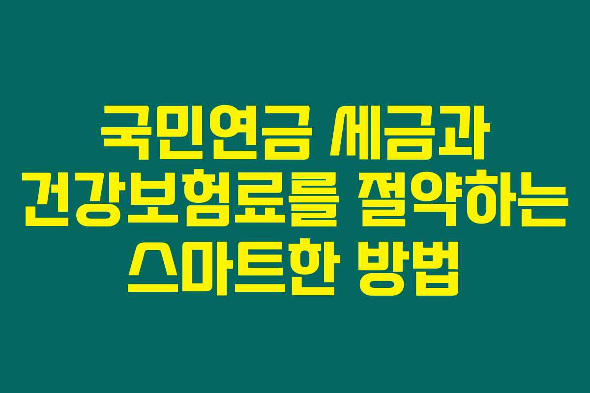 국민연금과 건강보험료, 부담스럽죠? 이런 세금과 보험료를 절약할 수 있는 방법에 대해 알아보면 좋을 것 같습니다. 아래를 읽어보시면 고액의 금액을 줄이는 똑똑한 팁과 정보를 가지고 갈 수 있을 거예요.
