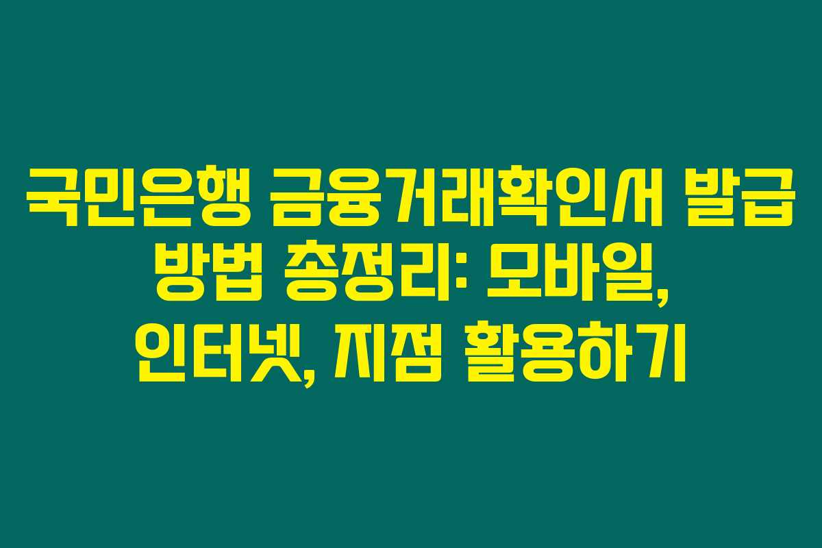 정리하자면, 국민은행에서 금융거래확인서 발급은 모바일, 인터넷, 그리고 지점 방문을 통해 간편하게 할 수 있습니다. 필요한 정보를 미리 확인하고 발급 방법을 선택하면 더욱 편리하게 이용할 수 있습니다. 필요한 순간에 대비해 미리 연습해보면 좋겠다는 생각이 드네요!
