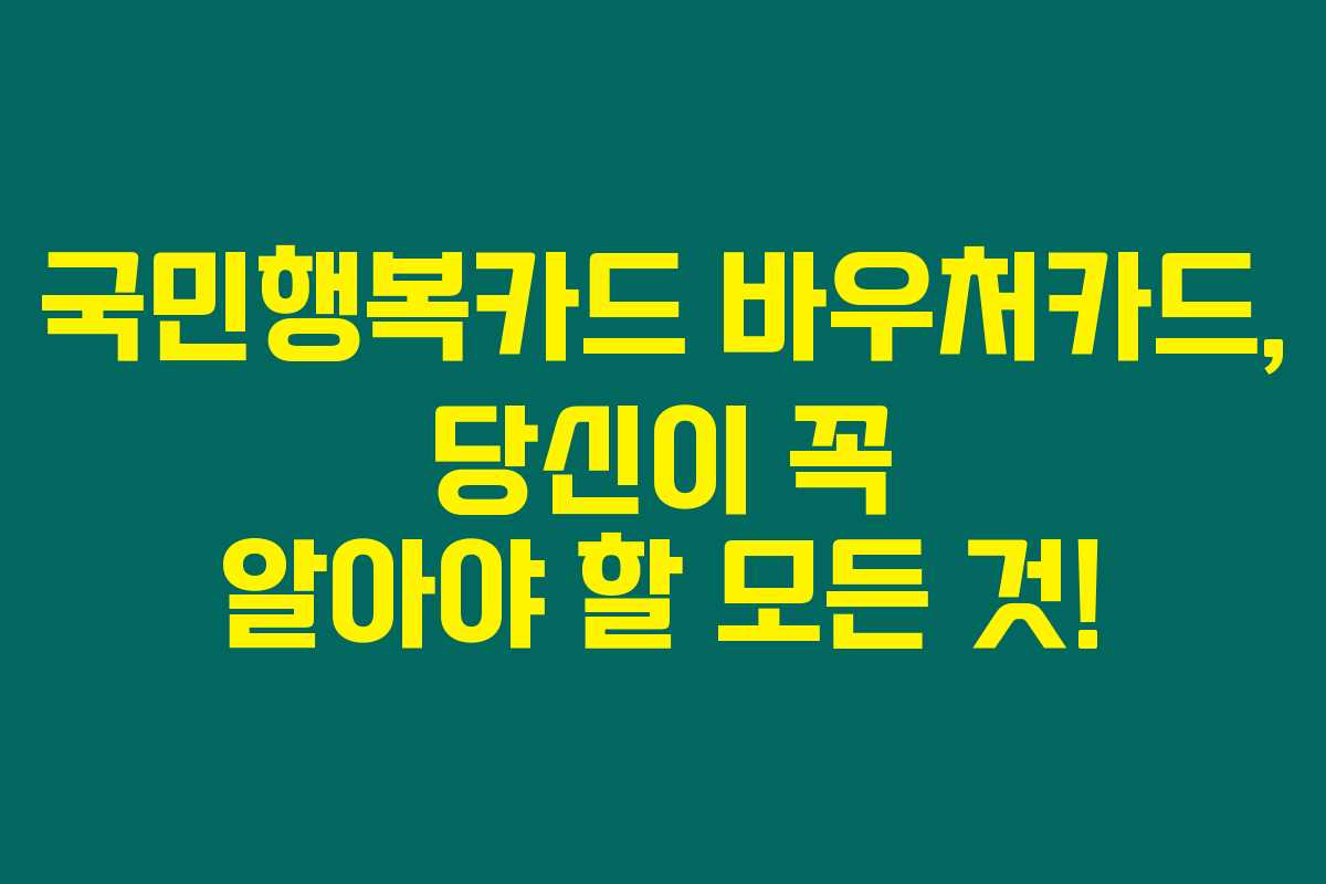 국민행복카드를 모르고 있다면 정말 손해일지도 몰라요. 다양한 혜택을 누리고 싶다면 아래 정보를 주목해 보세요.