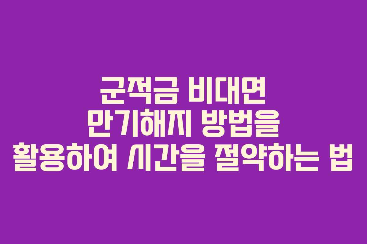군적금 비대면 만기해지 방법을 활용하여 시간을 절약하는 법