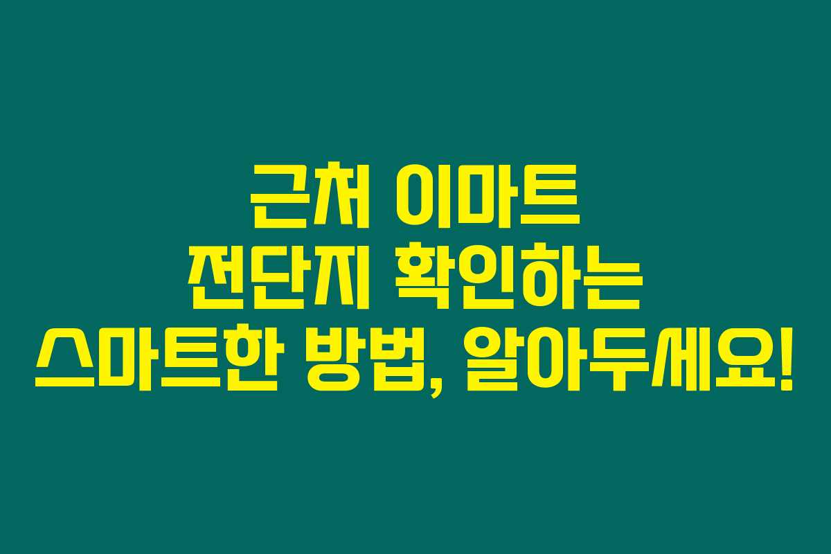 이마트가 근처에 어디에 있을지 궁금하신가요? 이사하거나 새로운 지역에 방문했을 때 점포를 찾는 방법은 매우 간단해요. 구글맵을 활용하면 간편하게 주변 이마트를 찾을 수 있답니다.