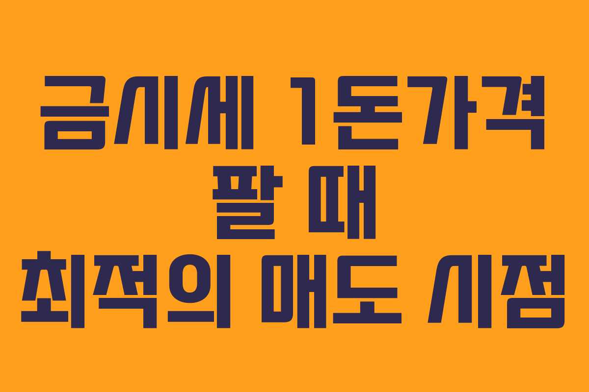 금시세 1돈가격 팔 때 적합한 매도 시점은 여러 요인에 따라 달라지므로, 자신의 투자 성향과 시장 데이터를 기반으로 한 분석이 필요합니다. 적절한 시점에 매도 결정을 내린다면 안정적인 수익을 기대할 수 있습니다.