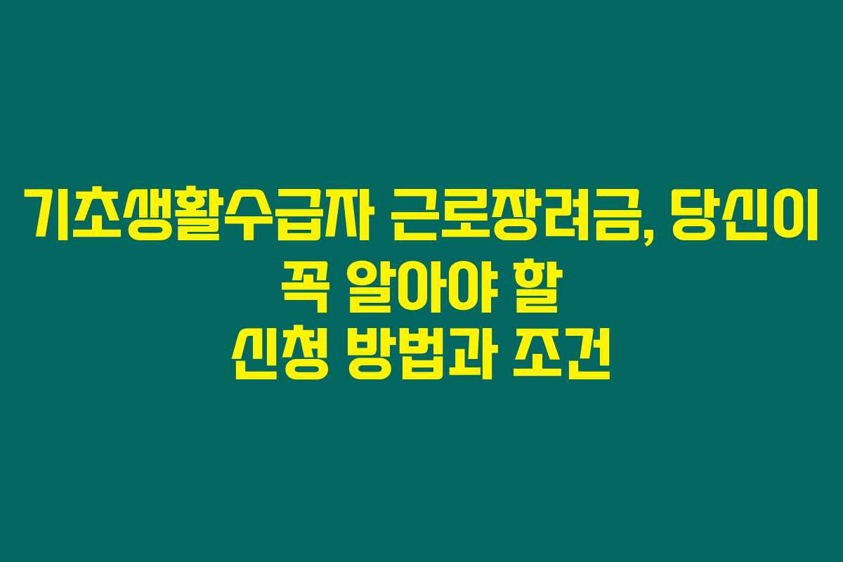 리터칭과 긴 글에 대한 설명 필요 없이, 기초생활수급자도 근로장려금을 통해 실질적인 소득 지원을 받을 수 있는 길이 열려있어요. 제도를 잘 활용하면 더 나은 삶을 살 수 있으니, 기회가 있을 땐 꼭 행동으로 옮기세요!