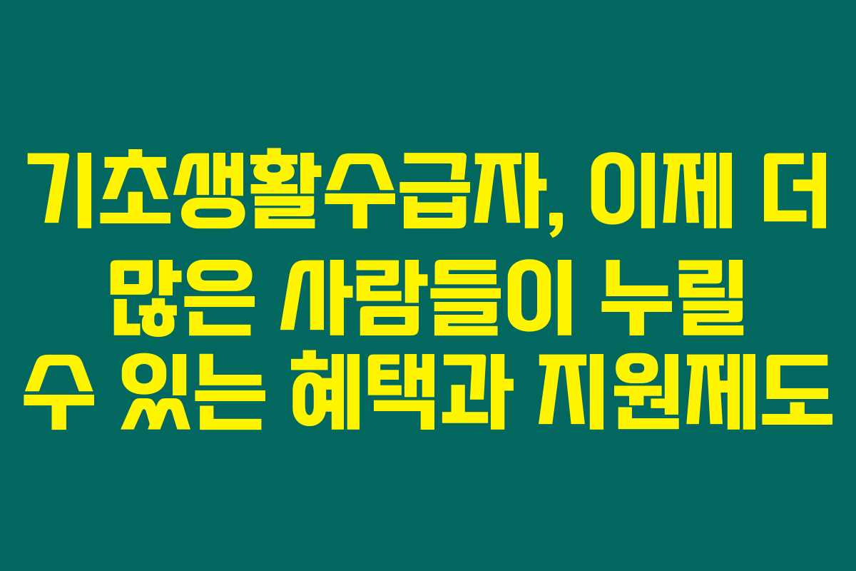 - 기초생활수급자의 혜택: 무엇을 받을 수 있을까?