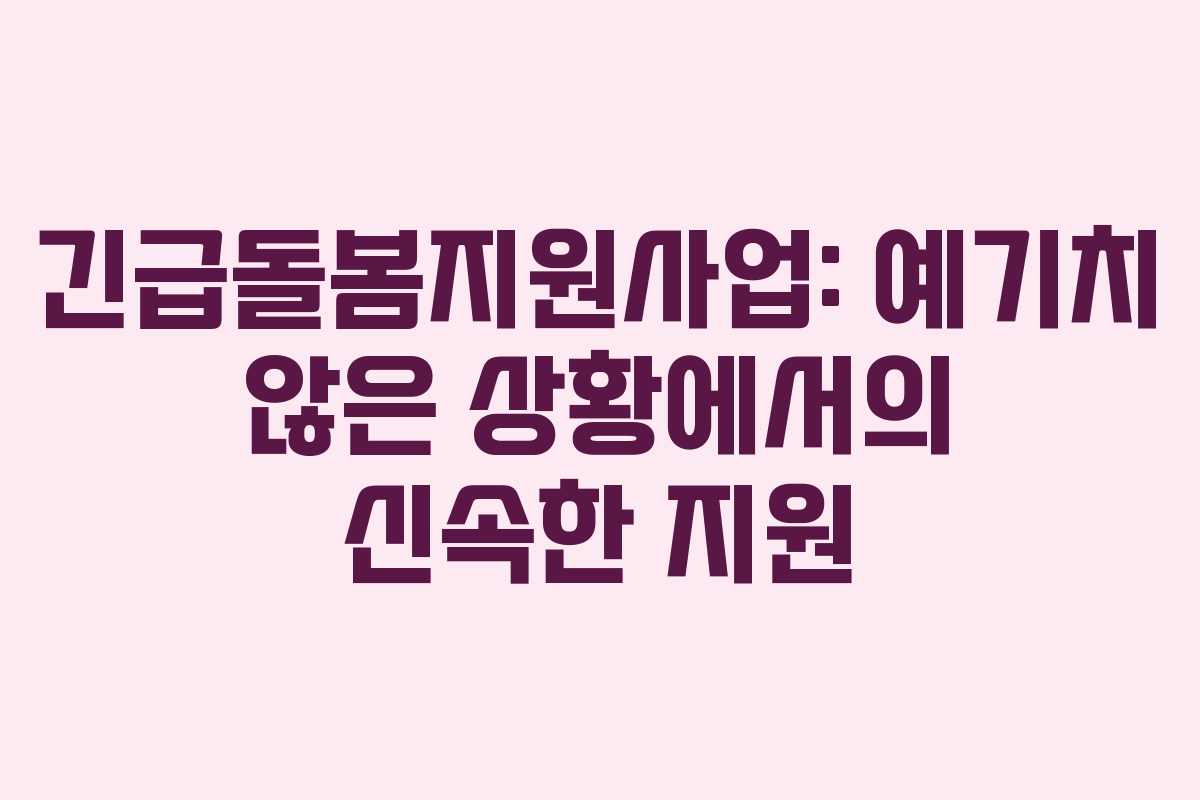 ‘긴급돌봄지원사업’은 필요한 시기에 적절한 돌봄을 신속하게 받을 수 있도록 도와주는 중요한 서비스입니다. 이 사업을 통해 긴급한 상황에 대한 대응을 강화하고, 안심하고 일상생활을 영위할 수 있도록 하세요.