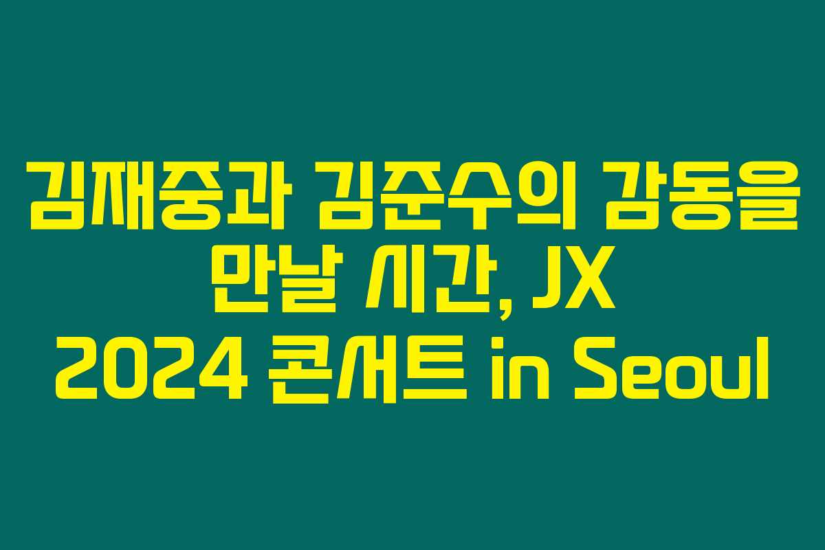 다가오는 JX 2024 콘서트 in Seoul은 팬들에게 뭉클한 순간을 안겨줄 기회입니다. 이번 콘서트를 놓치면 후회할지도 몰라요. 두 아티스트의 특별한 무대로 여러분을 초대합니다. 예매 정보를 미리 알아보면, 좌석 확보가 쉽답니다. 아래를 읽어보시면, 빠짐없이 모든 정보를 정리했어요!