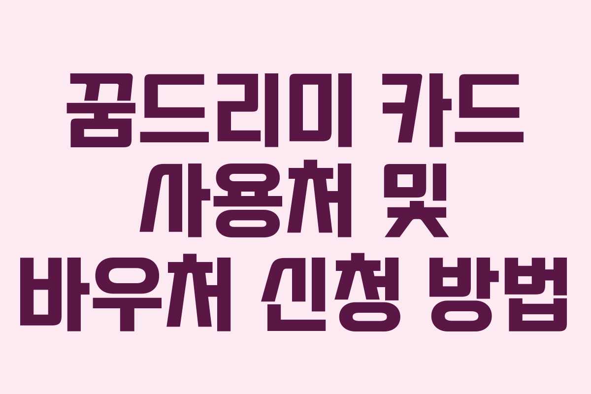 꿈드리미 카드는 청소년과 아동을 위한 유용한 복지 카드로, 다양한 지원을 통해 부모님들에게 큰 도움이 됩니다. 이 글에서는 꿈드리미 카드의 사용처와 바우처 신청 방법에 대해 상세히 안내하겠습니다.