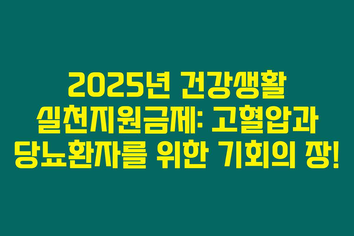 제가 직접 알아본 바로는, 오는 2025년부터 시행되는 건강생활 실천지원금제는 고혈압 및 당뇨병 환자들에게 금전적 인센티브 뿐만 아니라 건강한 생활 습관을 갖출 수 있는 훌륭한 기회랍니다. 건강관리를 통해 인센티브를 받을 수 있는 이 제도는 누구나 챙겨야 할 변화라고 할 수 있어요. 아래를 읽어보시면 더욱 자세한 내용을 알 수 있습니다.