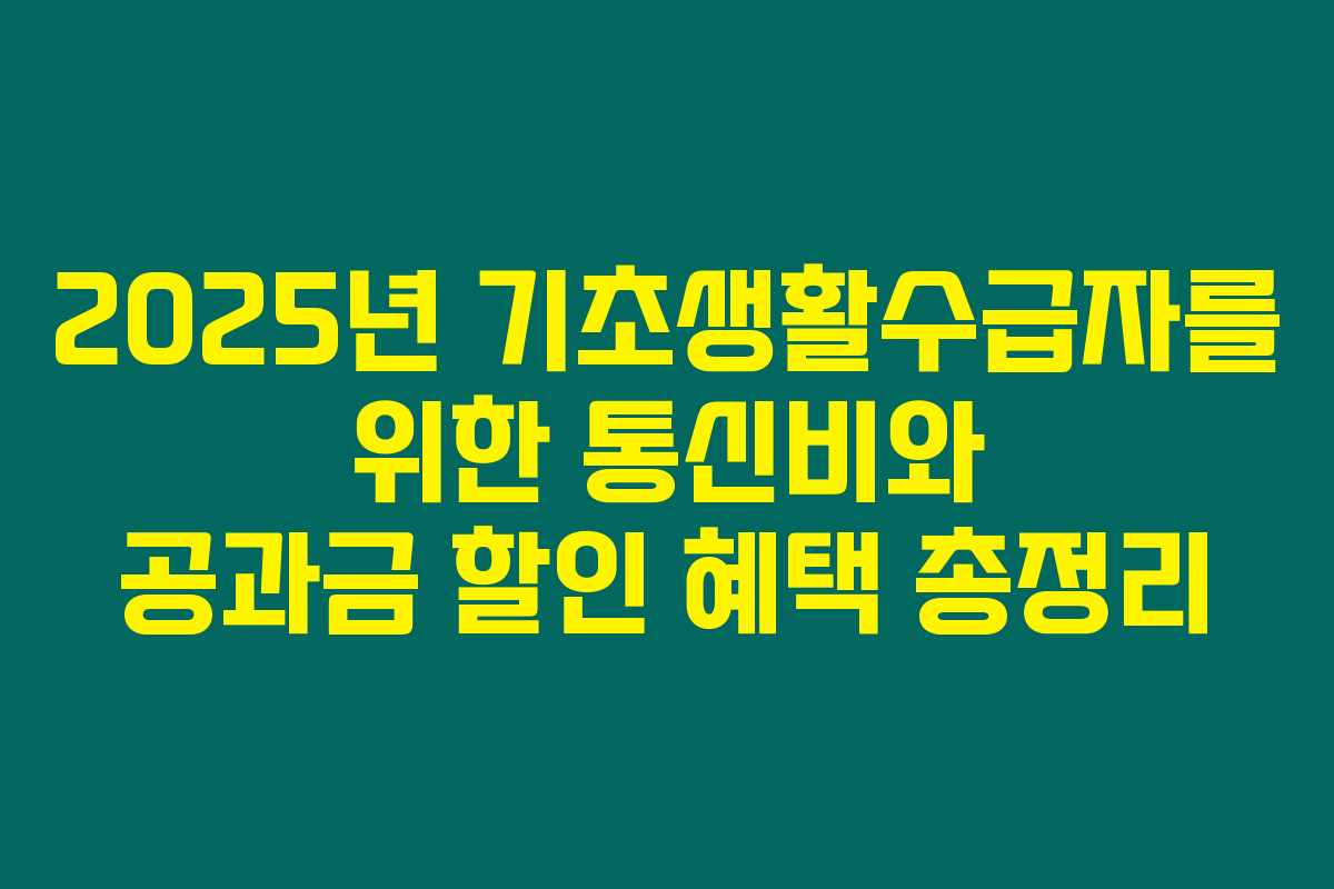 통신비와 공과금을 아끼는 것은 기초생활수급자에게 매우 중요합니다. 제가 직접 경험해본 결과로는, 할인 혜택을 통해 많은 돈을 절약할 수 있었답니다. 지금 즉시 신청하면 월 최대 수만 원의 생활비 절감을 경험해보세요!