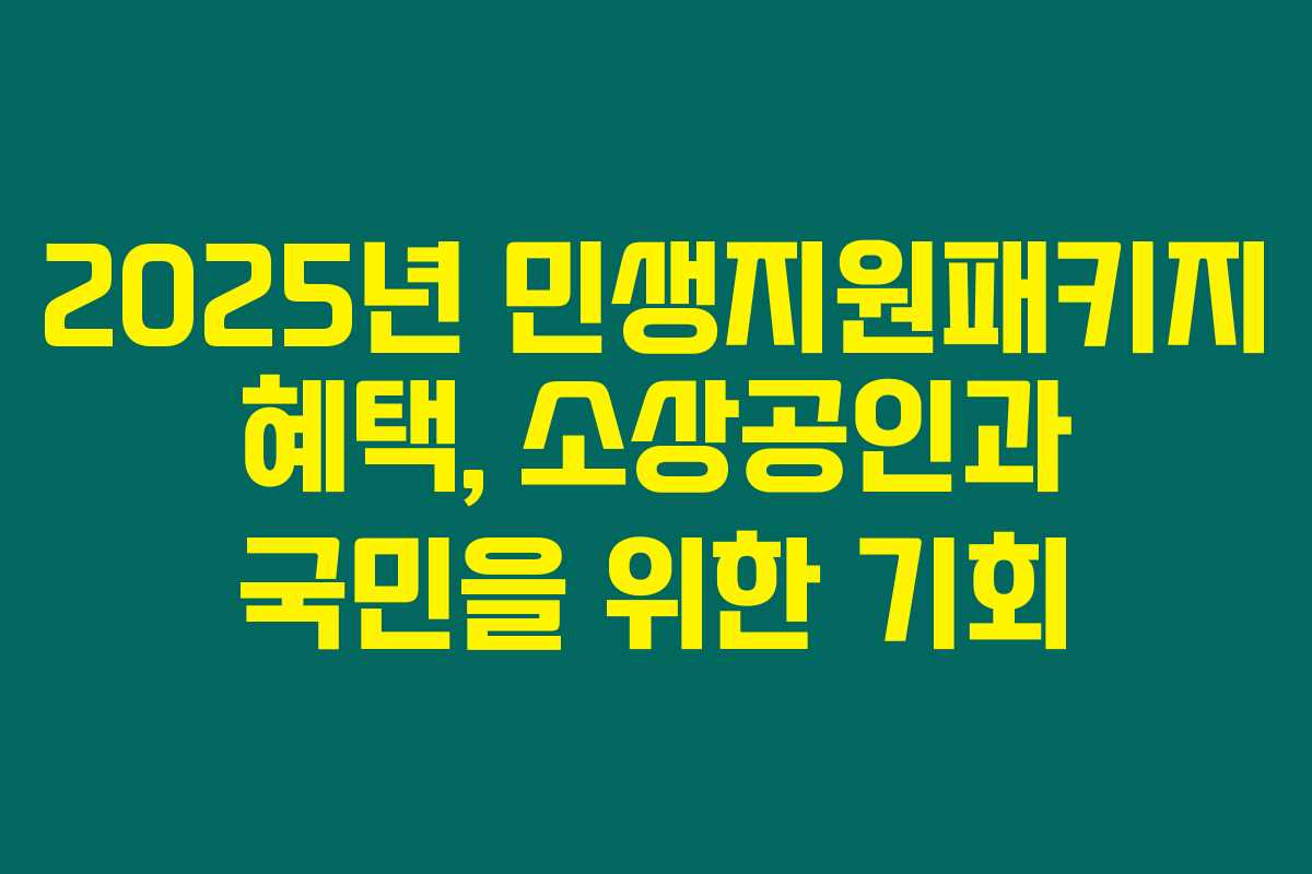 2025년 민생지원패키지 혜택은 경제적으로 힘든 시간을 겪고 있는 소상공인과 국민에게 큰 도움이 될 것입니다. 반드시 필요한 정보를 잘 이해하고 활용하셔서 든든한 지원을 받으시길 바랍니다. 함께 이 어려운 시기를 이겨내보아요!