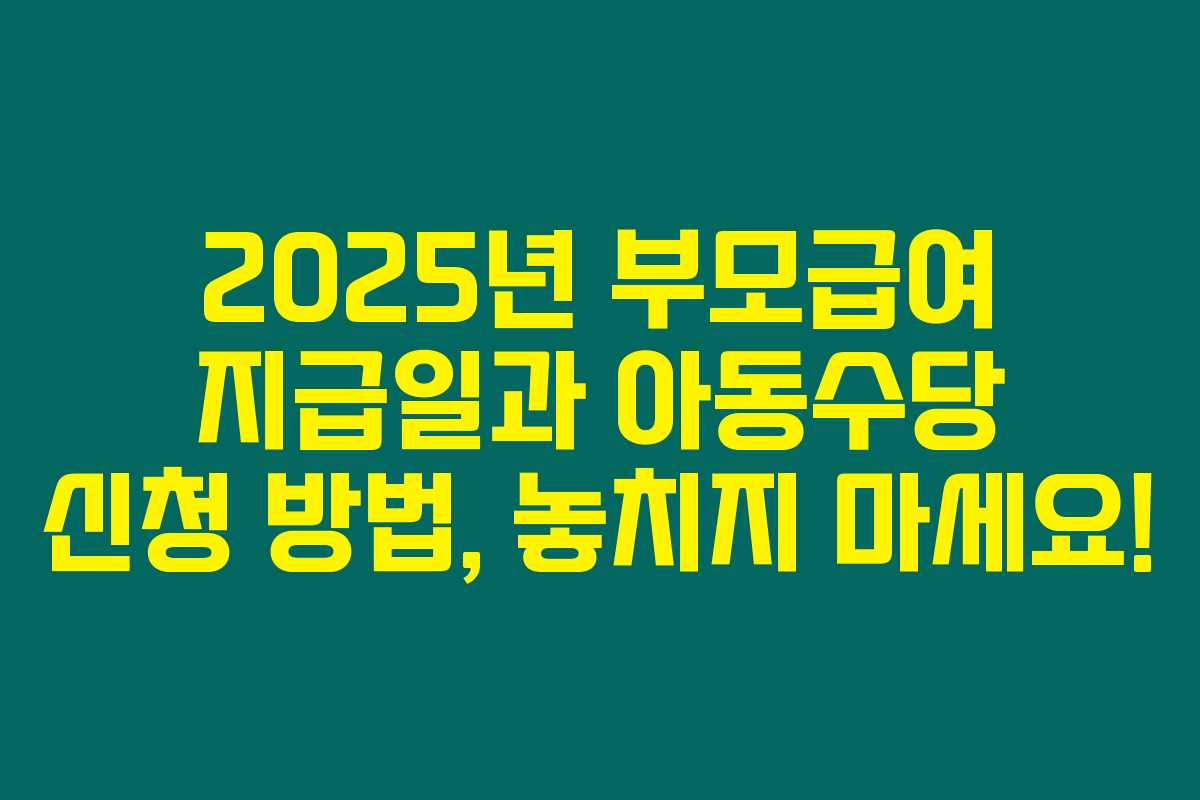 제가 직접 경험해본 결과로는, 육아라는 큰 사랑의 여정이 긍정적인 경험이지만, 경제적인 부담감을 함께 수반하기도 해요. 그래서 부모급여와 아동수당은 저와 많은 부모님들에게 큰 도움이 되었는데요. 이제 2025년 부모급여 지급일과 아동수당 신청 방법을 깔끔하게 정리해 드릴게요. 아래를 읽어보시면 부모님들의 유익한 정보가 가득할 거에요.