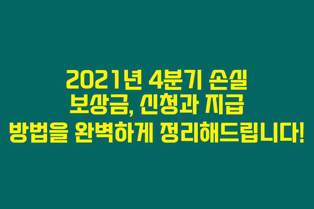 제가 직접 체크해본 바로는, 2021년 4분기 손실 보상금이 자영업자들에게 큰 도움이 될 수 있는 중요한 지원 정책이에요. 이번 손실 보상금은 장기화된 방역 조치로 어려움을 겪고 있는 소상공인들에게 실질적인 도움이 될 것으로 기대됩니다. 아래를 읽어보시면, 신청 및 지급 방식과 관련된 자세한 내용을 확인하실 수 있습니다.