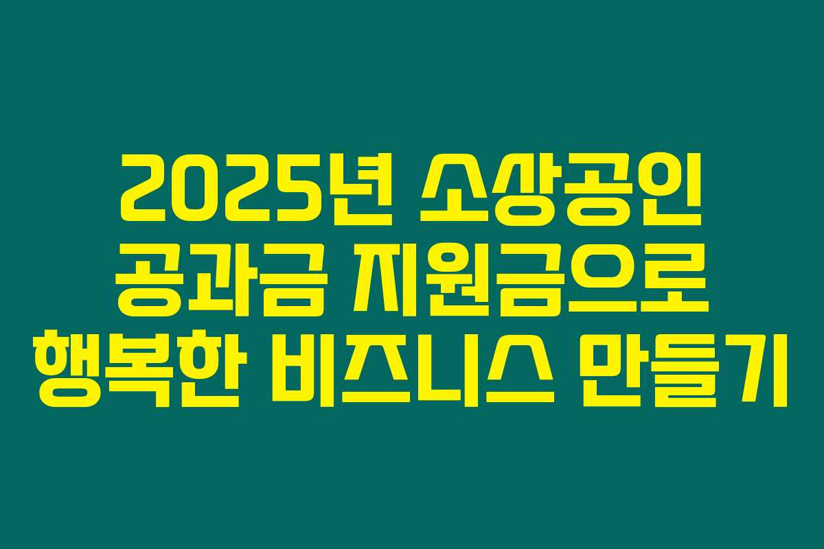 2025년 소상공인 공과금 지원금으로 행복한 비즈니스 만들기
