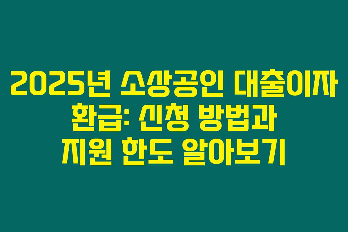 제가 직접 체크해본 바로는 2025년부터 소상공인 대출이자 환급 제도가 소상공인들에게 실질적인 도움을 줄 수 있는 기회가 많아질 것 같아요. 최근 고금리 대출로 어려움을 겪는 소상공인에게 필요한 지원을 제공하기 위해 만들어진 이 제도를 통해, 최대 300만 원까지의 환급을 신청할 수 있답니다. 아래를 읽어보시면 이 제도의 세부 조건 및 신청 방법에 대해 자세히 알 수 있습니다.
