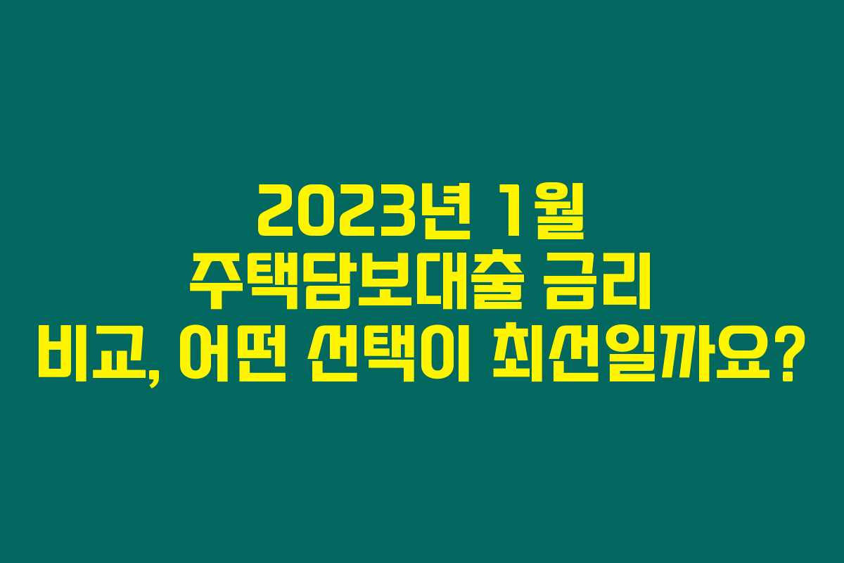 제가 직접 체크해본 바로는, 2023년 1월의 주택담보대출 금리는 상당히 다양한 변동을 보이고 있습니다. 특히, 대형 일반은행들의 주택담보대출 금리 비교에 주목할 필요가 있지요. 금리가 계속해서 변동하는 가운데, 고정금리와 변동금리의 장단점을 잘 이해하고 선택하는 것이 중요합니다. 아래를 읽어보시면 보다 현명한 선택을 할 수 있을 것입니다.