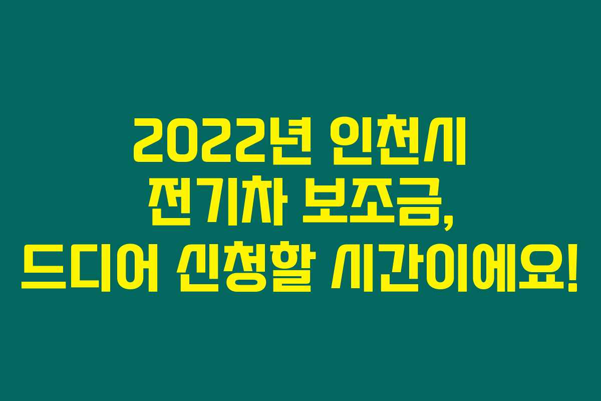 인천시의 2022년도 전기차 보조금 정보가 공개됐어요. 만약 인천에 거주하며 전기차 구입을 고려하고 계시다면, 이 기회를 놓치지 마세요! 아래를 읽어보시면, 필요한 보조금과 신청 방법에 대한 모든 정보를 얻을 수 있습니다.