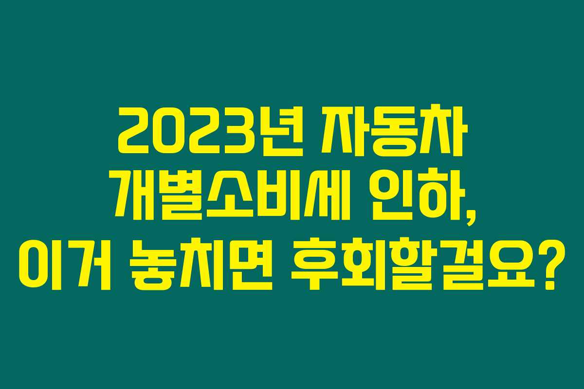 제가 직접 알아본 바로는, 2023년 자동차 개별소비세가 인하되면서 많은 소비자들이 큰 혜택을 받을 수 있는 기회가 생겼습니다. 당장 자동차 구매를 고려하고 계신 분들이라면 이 정보를 꼭 체크해보셔야 해요. 자동차 개별소비세의 인하 방침과 계산 방법에 대한 구체적인 내용을 아래를 읽어보시면 확인할 수 있습니다.