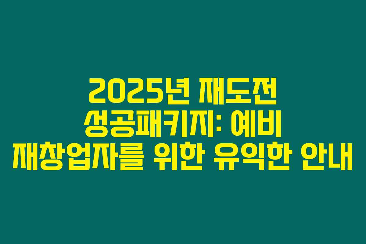 제가 알아본 바로는 2025년 재도전 성공패키지는 폐업 이력을 지닌 예비 재창업자와 최근 7년 이내 재창업 기업을 대상으로 한 매우 소중한 기회입니다. 이번 패키지에서는 사업화 자금을 최대 1억원까지 지원하고 있으며, 이러한 지원은 많은 재도전자들에게 희망의 불씨가 될 것입니다. 아래를 읽어보시면 이 프로그램의 주요 내용과 신청 방법에 대해 더욱 자세하게 알아볼 수 있을 것입니다.