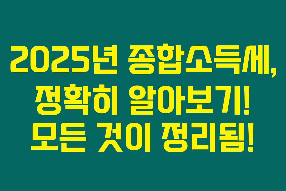 2025년 종합소득세에 대한 정확한 정보와 계산 방법을 통해, 여러분도 누락 없이 준비하시길 바랍니다. 만약에 아직도 신고할 내용이 기억나지 않는다면, 바로 확인해보세요!