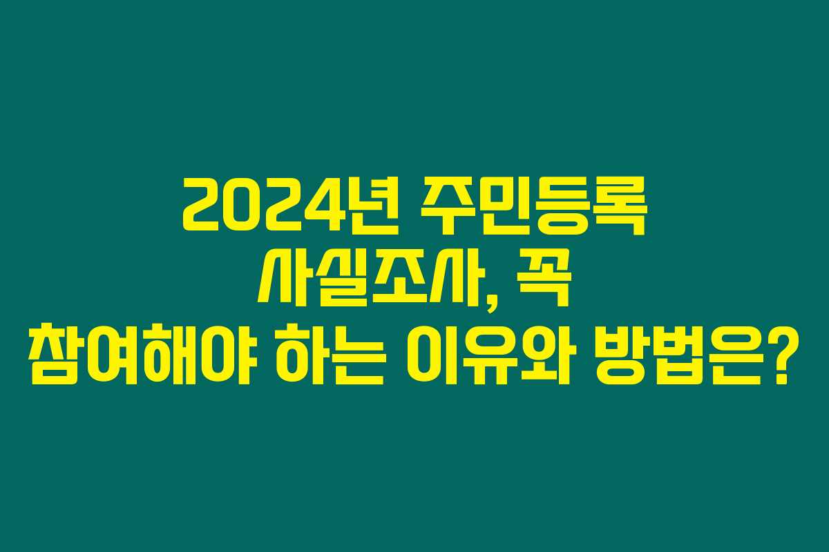 2024년 주민등록 사실조사는 비대면 조사는 7월 22일부터 8월 26일까지 실시되며 방문 조사는 8월 27일부터 10월 15일까지 진행됩니다.