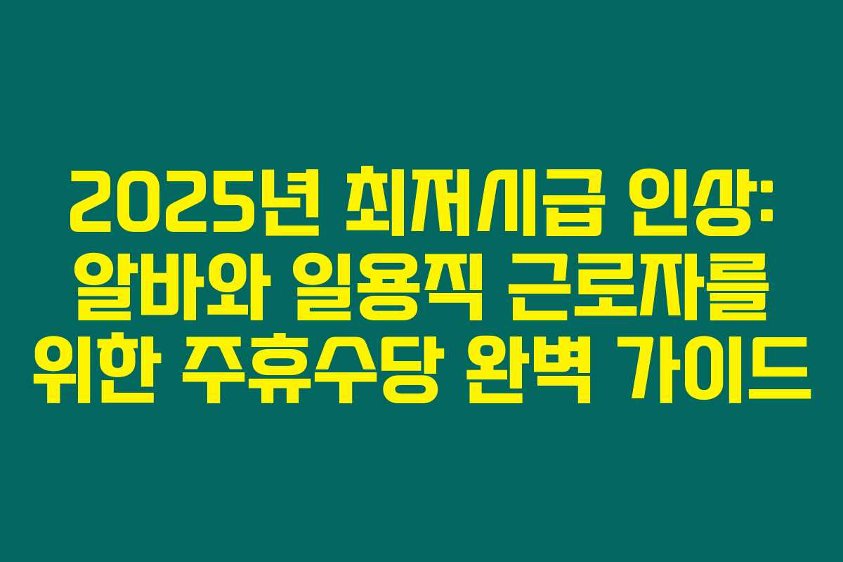 2025년에는 최저시급이 크게 인상될 예정입니다. 제가 직접 확인해본 결과, 이 변화는 알바와 일용직 근로자의 임금에 중요한 영향을 미치게 될 것입니다. 이런 변화를 이해하고, 주휴수당 관련 내용도 체크하는 것이 필요하죠. 알바와 일용직 근로자가 주휴수당을 계산하는 방법과 그 조건을 쉽게 이해할 수 있도록 정리해 드릴게요.