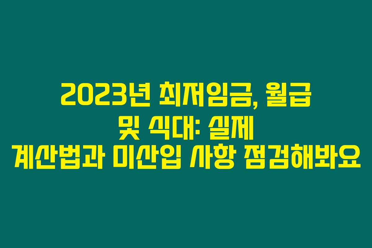 제가 직접 경험해본 결과로는, 2023년 최저임금과 월급, 그리고 식대 관련 알고 있어야 할 중요한 사항들을 아래를 읽어보시면 자세히 알 수 있습니다. 최저임금은 단순한 숫자가 아닌 우리 생활에 큰 영향을 미치는 주요 요소죠.