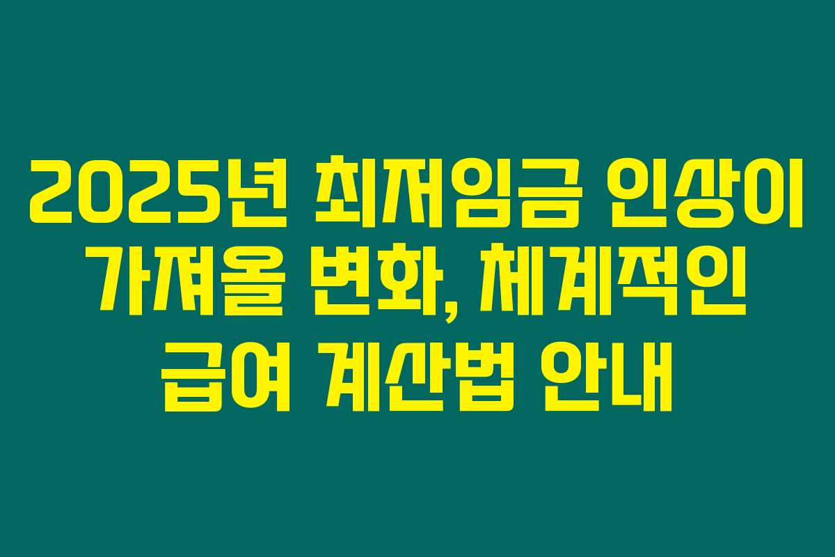 이번 글을 통해 2025년 최저임금 인상이 일상생활에 미치는 영향과, 이에 따른 급여 계산법에 대해 상세히 설명드리려고 해요. 제가 알아본 바로는 2025년 최저임금이 시간당 10,030원으로 인상되었으며, 이를 바탕으로 시급, 일급, 주급, 월급 및 주휴수당 계산법을 설명하겠습니다. 이 글을 통해 근로자 여러분이 새로운 최저임금을 바탕으로 스스로의 급여를 이해하고 예측하는 데 도움이 되길 바랍니다.