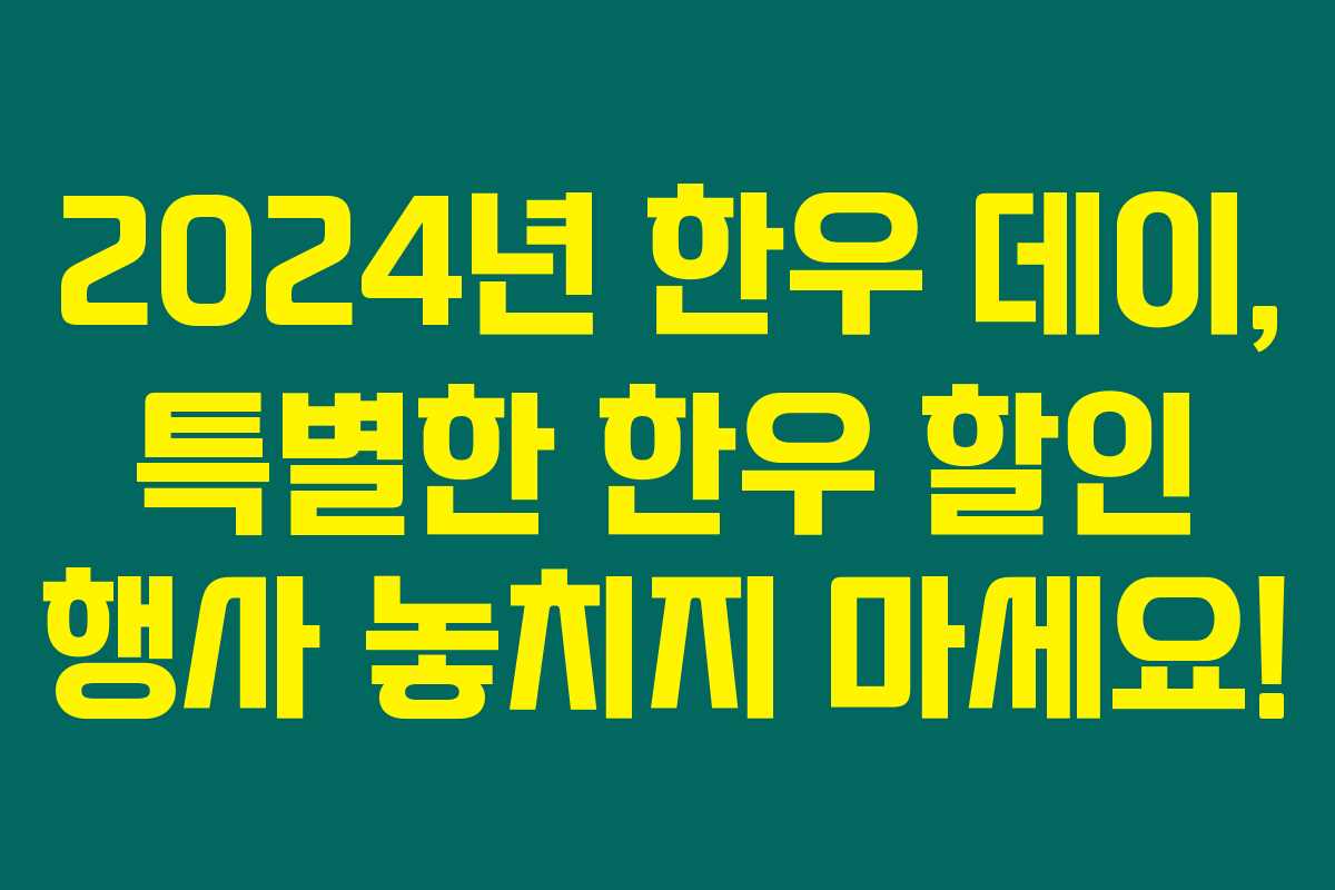 제가 직접 알아본 바로는, 2024년 11월 1일은 한우 먹는 날로, 이 날을 맞아 농림축산식품부가 주관하는 대규모 한우 할인 이벤트가 열릴 예정이에요. 이 할인 행사 기간인 10월 30일부터 11월 8일까지, 다양한 한우 품목을 저렴한 가격에 구매할 수 있어 정말 기쁜 소식이랍니다. 아래를 읽어보시면, 한우 할인 행사에 대한 자세한 내용을 확인할 수 있어요.