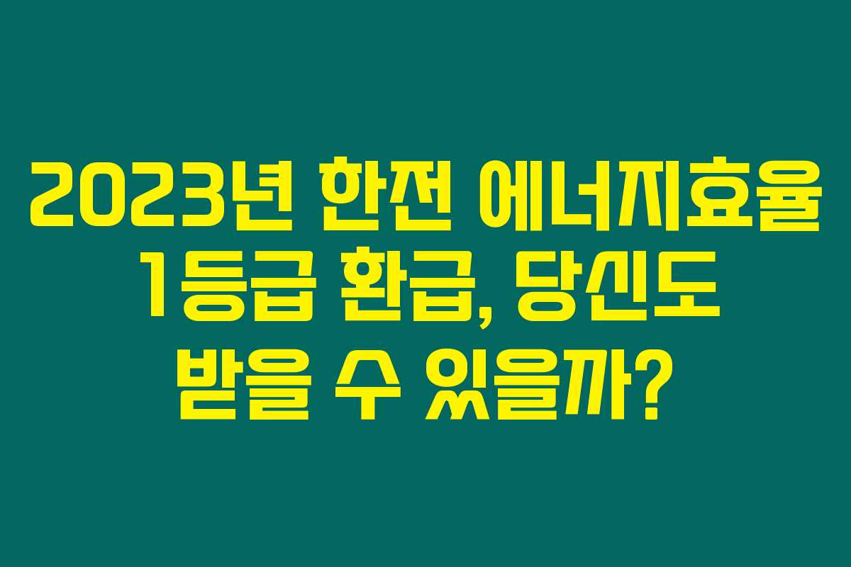 2023년 한전에서 제공하는 에너지효율 1등급 환급 제도는 알뜰한 가전 구매를 희망하는 소비자에게 큰 도움이 됩니다. 이 프로그램은 1등급 에너지 효율을 지닌 가전제품을 구매했을 때, 최대 20% 환급을 받을 수 있는 기회를 제공합니다. 아래를 읽어보시면 이 제도가 어떻게 진행되는지, 어떤 제품이 대상인지, 신청 방법까지 알아보실 수 있습니다.