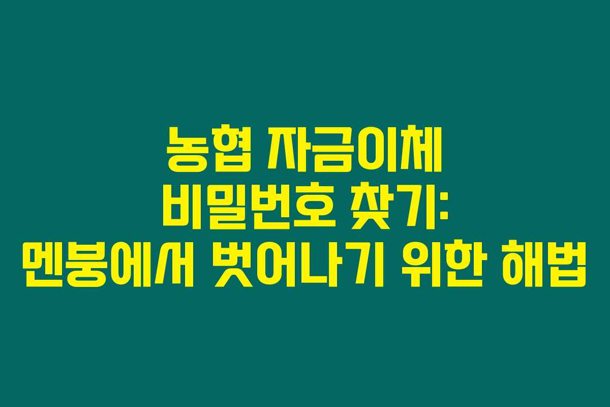 이 글을 통해 농협 자금이체 비밀번호 찾고 관리하는 법을 아셨으니, 앞으로는 걱정 없겠죠? 여러분도 안전하게 자금을 관리하세요!