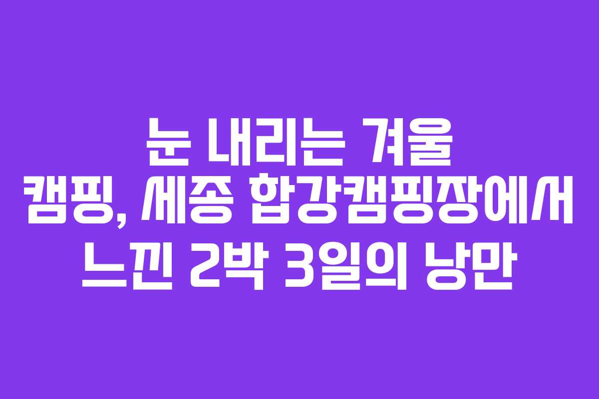 겨울 캠핑의 매력을 느끼고 싶으신가요? 세종 합강캠핑장에서의 2박 3일 동안의 경험을 통해 겨울 캠핑의 진정한 매력을 소개합니다.