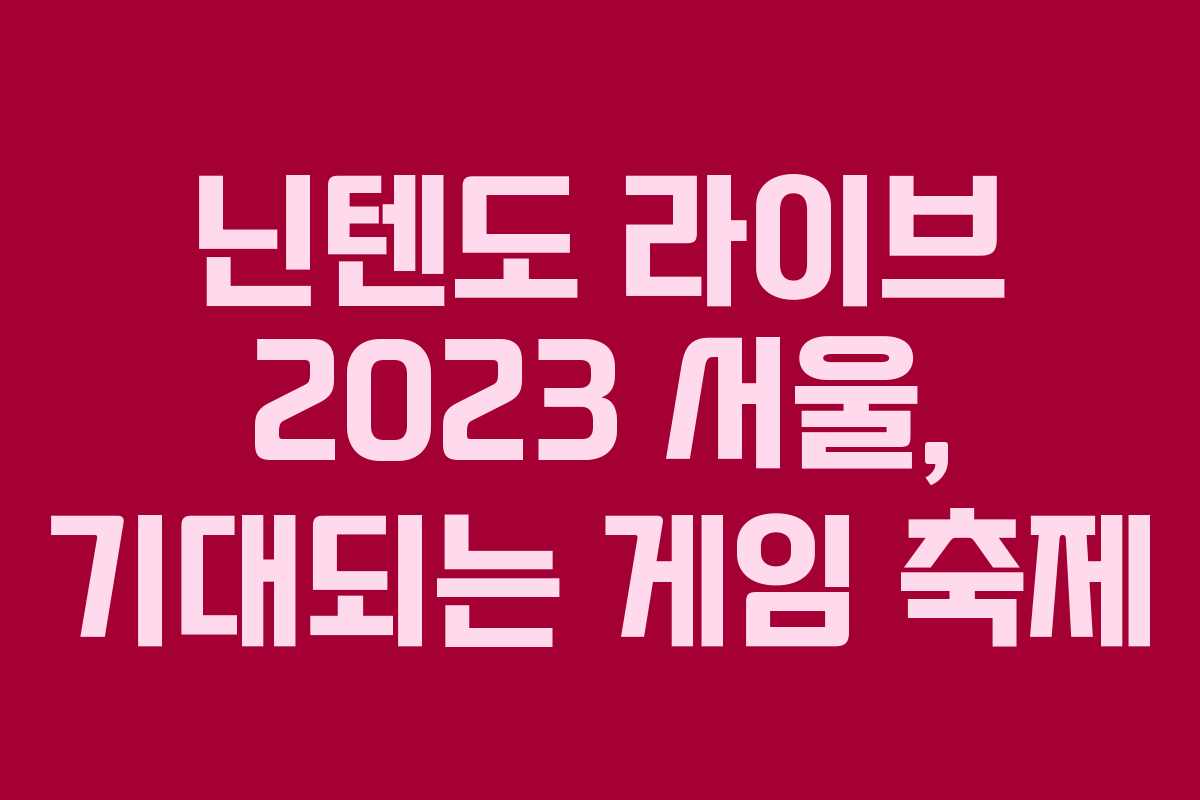 2023년 12월 10일, 서울 코엑스 B홀에서 닌텐도 라이브 2023 서울이 개최됩니다. 이 행사는 국내에서 최초로 진행되는 닌텐도 콘텐츠 행사로, 다양한 게임을 직접 체험하고 기념촬영, 굿즈 구매 등 다양한 즐길 거리가 마련되어 있습니다.