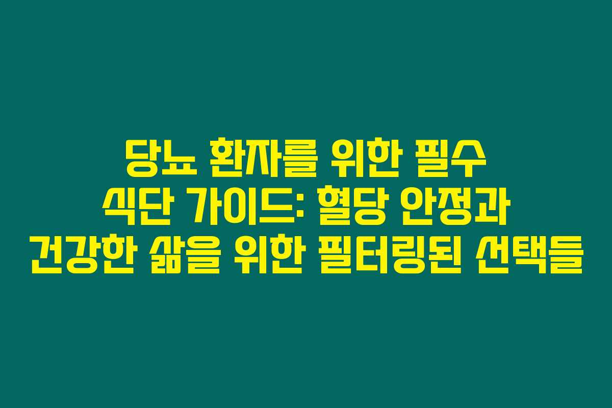 당뇨 환자를 위한 식단은 피해야 할 음식과 추천 음식으로 나누어지며, 효과적인 식단 계획 방법 등 여러분에게 필요한 모든 정보를 제공합니다. 여러분의 건강한 식생활을 위한 첫걸음이 될 거예요!