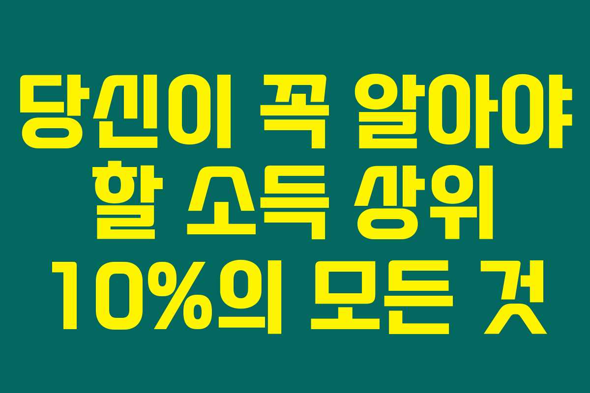 소득 상위 10%에 대해 궁금하셨다면 주목해 주세요. 지금 당신이 그 소득 구간에 포함될 수 있는지 확인하고, 그들이 어떤 특징을 가지고 있는지도 알아보면 좋겠어요. 나만의 경제적 목표를 설정하는 데 도움이 될 거랍니다.