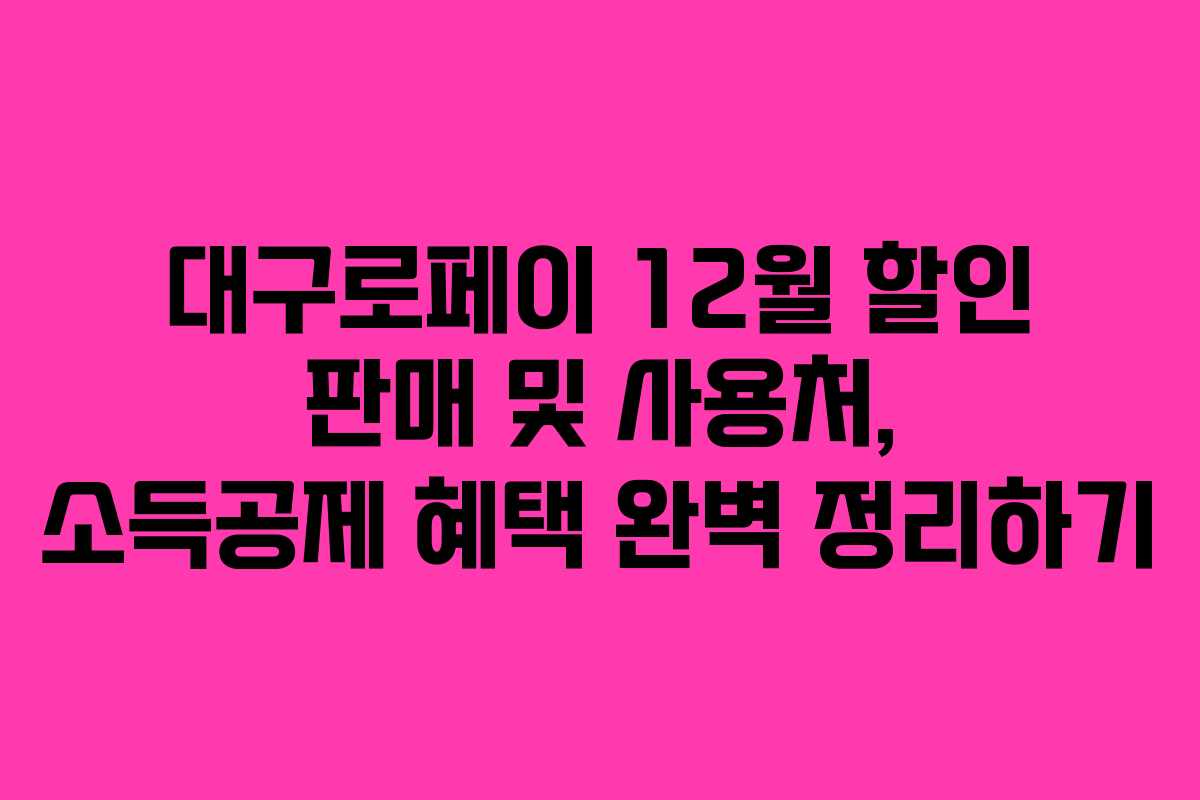 대구로페이 12월 할인 판매 및 사용처, 소득공제 혜택 완벽 정리하기