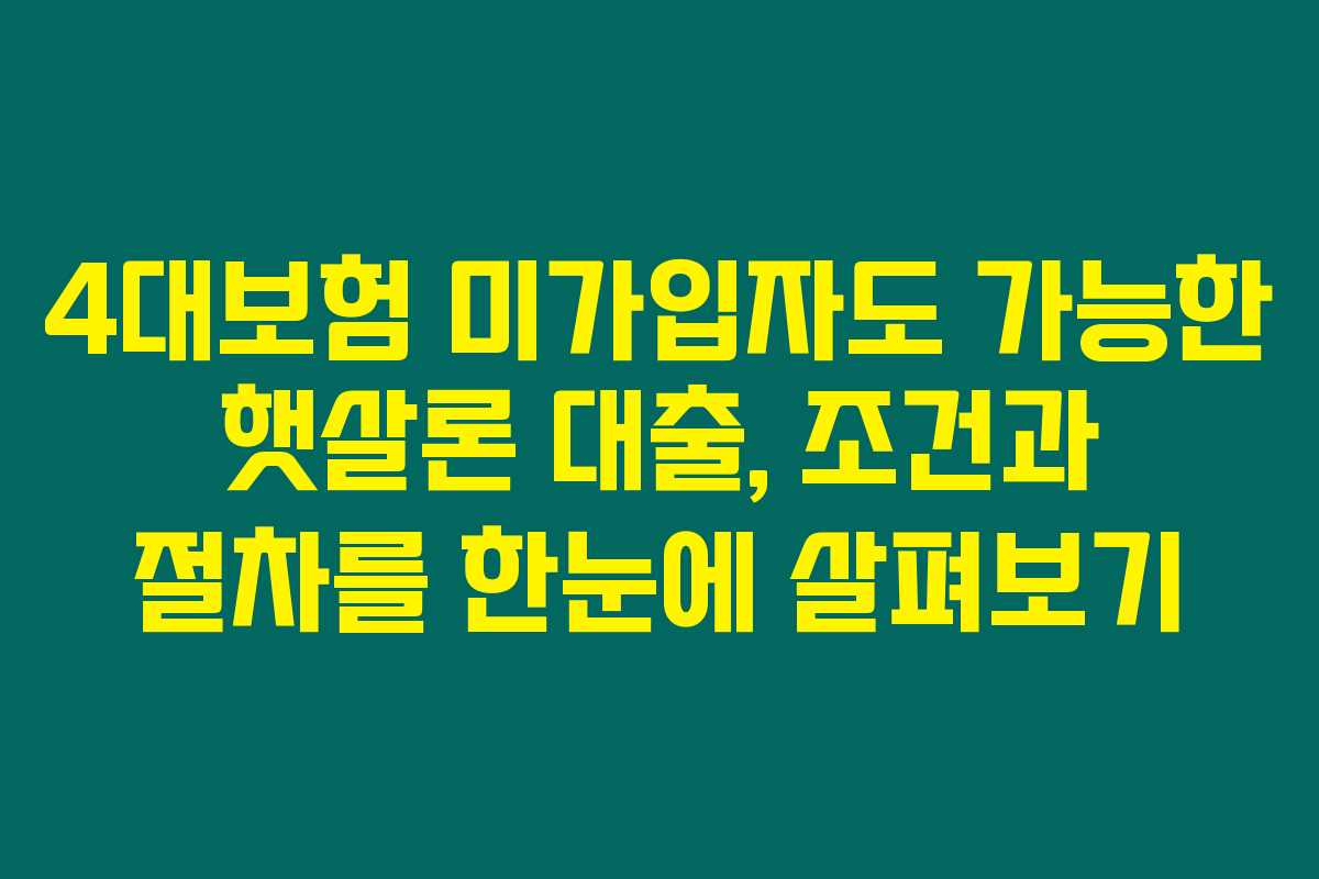 햇살론은 4대보험 미가입자도 신청 가능하며, 저금리로 자금을 대출받을 수 있다는 점에서 큰 장점이 있습니다.