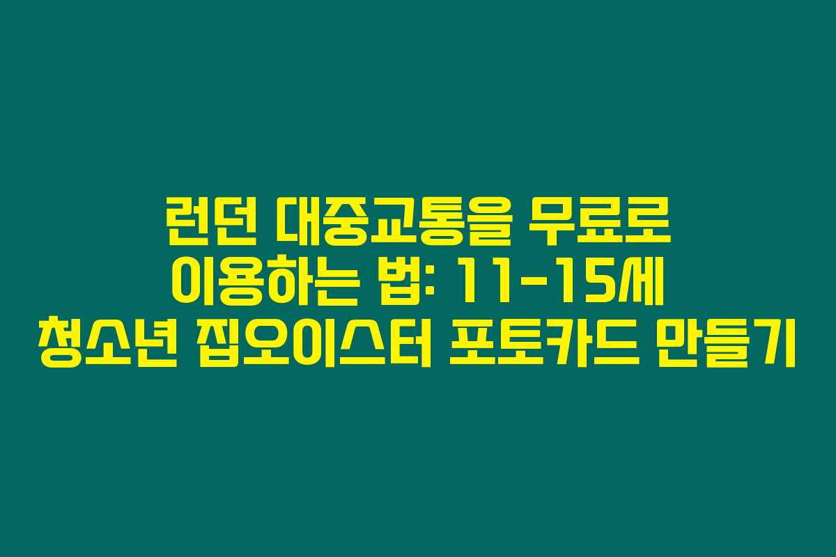 런던에서 11-15세 청소년이 대중교통을 이용할 때, 집오이스터 포토카드를 이용하면 무료 및 할인 혜택이 많답니다. 요즘 같은 시대에 교통비를 절약하는 것은 매우 중요한 선택이에요. 섬세한 계획이 여러분의 런던 여행을 더욱 즐겁게 만들어줄 거에요.