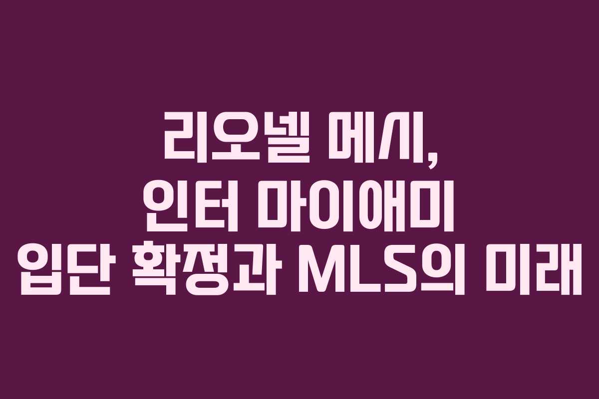 리오넬 메시가 미국 프로축구리그인 MLS의 인터 마이애미에 입단하는 것이 확정되었습니다. 이로써 그는 새로운 도전에 나설 준비를 마쳤습니다.