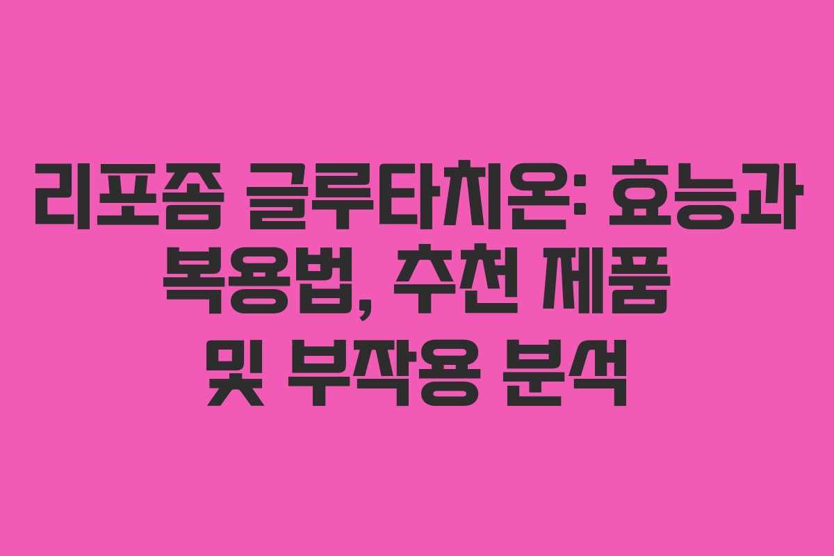 리포좀 글루타치온은 기존 글루타치온의 흡수 한계를 극복한 건강 보충제로, 항산화 작용과 피부 미백, 면역력 강화에 효과적입니다. 본 글에서는 리포좀 글루타치온의 정의와 효능, 복용법, 추천 제품, 부작용 및 주의사항 등을 상세히 살펴보겠습니다.