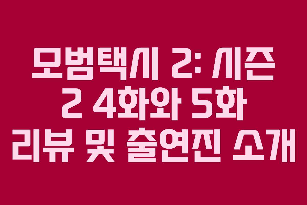 모범택시 2: 시즌 2 4화와 5화 리뷰 및 출연진 소개