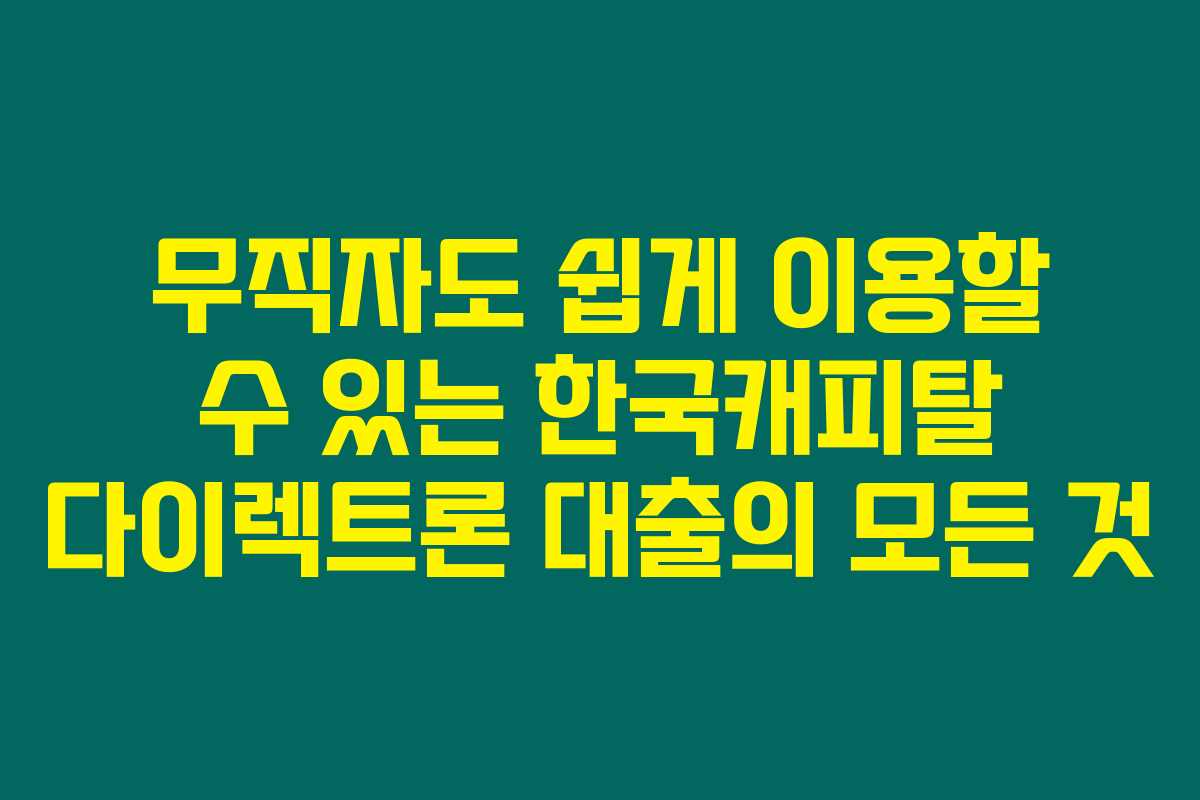 한국캐피탈 다이렉트론의 개요: 무직자를 위한 빛나는 선택지